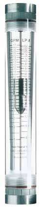 这些流量计适用于腐蚀性较强的加工环境。除了经加工的丙烯酸机身,还使用了 SS 浮子导向设计。这种结合适用于高振动、高波动的样品处理应用。某些版本配有带铝应力环加固的聚丙烯终端接头,增加流量计强度。